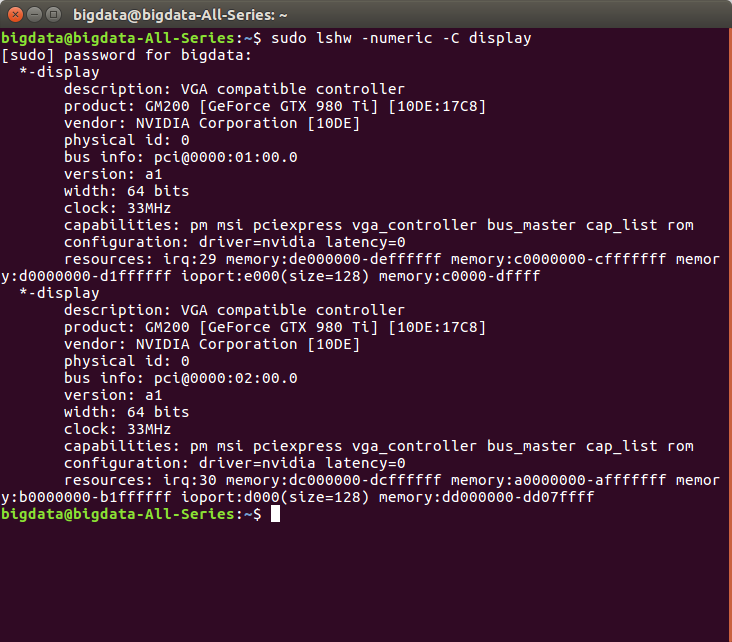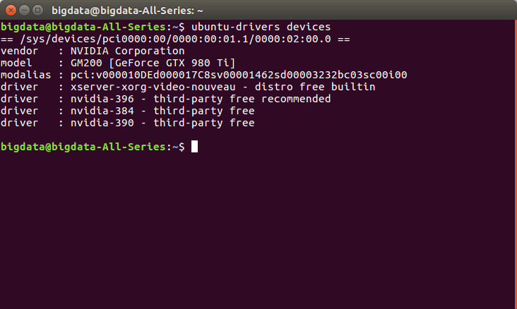 进入系统,我们要看刚刚的显卡驱动是否已经正确安装成功,通过下面命令查看: