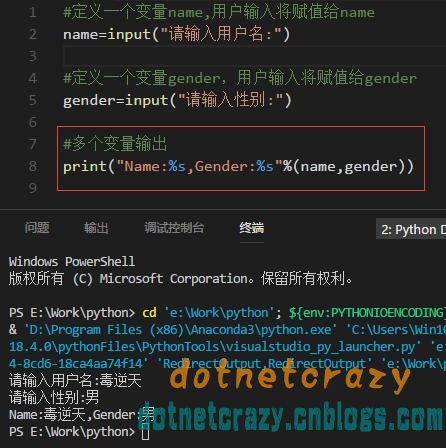 Python:print("Name:%s,Gender:%s"%(name,gender))【注意引号后面没有,哦】