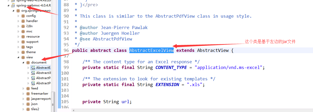 1.本工具类继承于 spring-webmvc-4.0.4jar文件心中的一个类 AbstractExcelView
