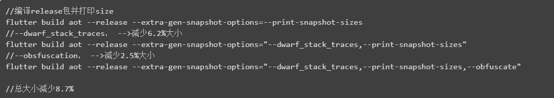 --dwarf_stack_trace和--obfuscate减小生成代码的体积