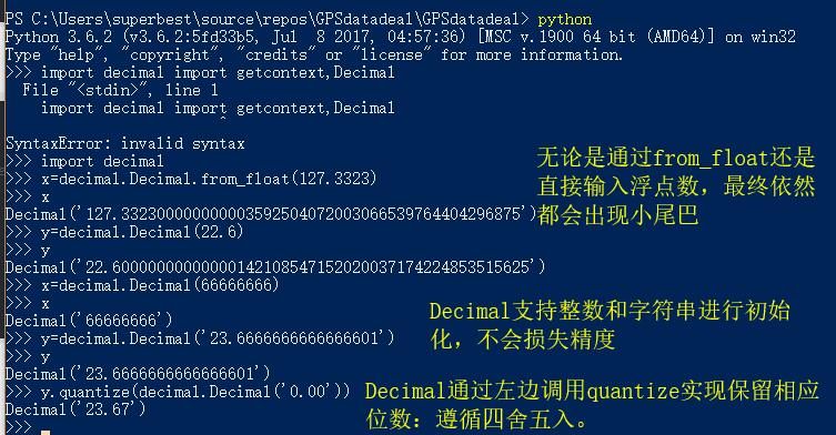 提高精度——Python本身自带的float已经是可支持浮点数的最高精度形式。当然,这个肯定是不能阻挡我们对更高精度的要求,这里可以自己实现高精度的数据形式,也可以使用Python扩展模块:Decimal。使用Decimal本身需要导入decimal包,初始化decimal数据可以使用整型数据和字符串,而不能使用float型数据,正如之前我们所说的那样,某些浮点数存储会发生精度损失——这意味着float本身就不够精确。