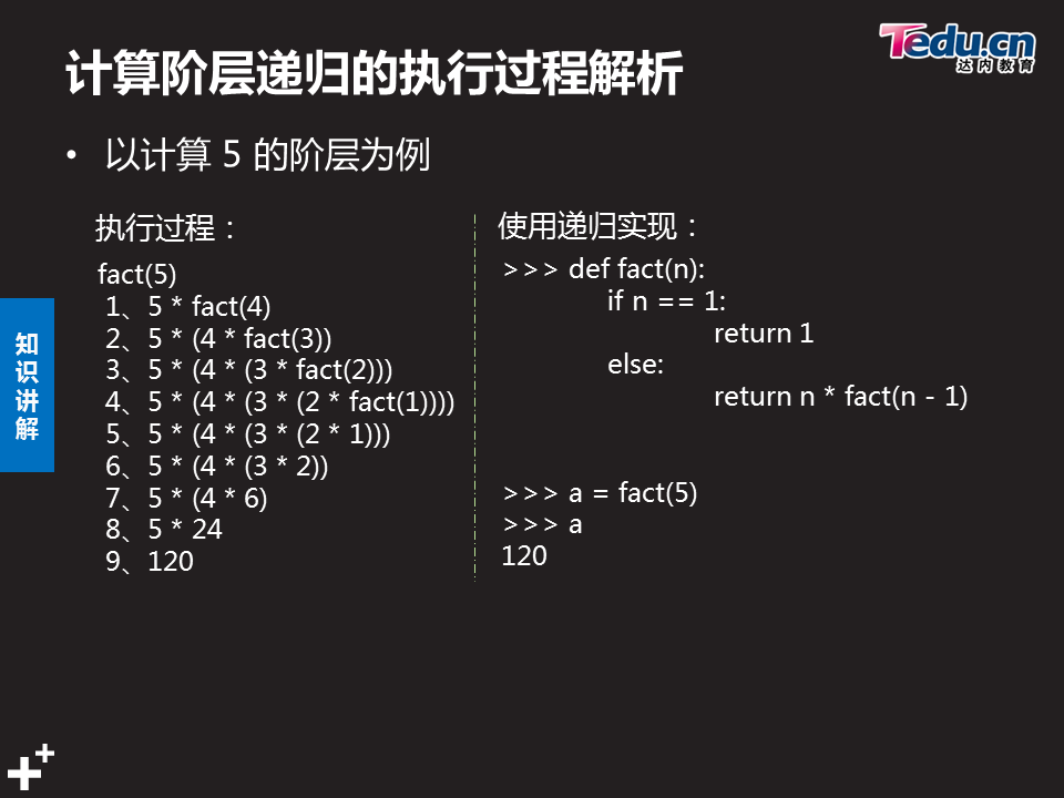 def fact(n): 第一次执行函数 n = 5 | 第二次执行这里n就变成了4 | 第三次执行这里n就变成了3