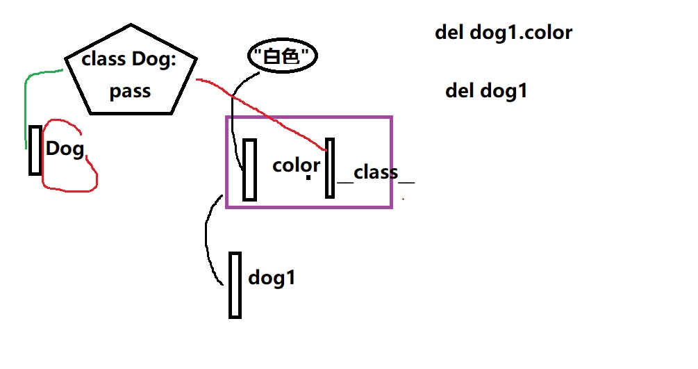 >>> class Dog: ... pass >>> dog1 = Dog() >>> dog1.name = "哈哈" >>> dog1.__dict__ {'name': '哈哈'} >>> dog1.age = 3 >>> dog1.__dict__ {'age': 3, 'name': '哈哈'} >>> del dog1.age >>> dog1.__dict__ {'name': '哈哈'} >>>