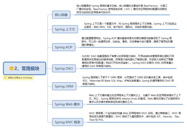 Spring框架是分模块存在,除了最核心的Spring Core Container(即Spring容器)是必要模块之外,其他模块都是可选,视需要而定。大约有20多个模块。Spring的核心是控制反转(IoC)和面向切面(AOP)。简单来说,Spring是一个分层的JavaSE/EE full-stack(一站式) 轻量级开源框架。