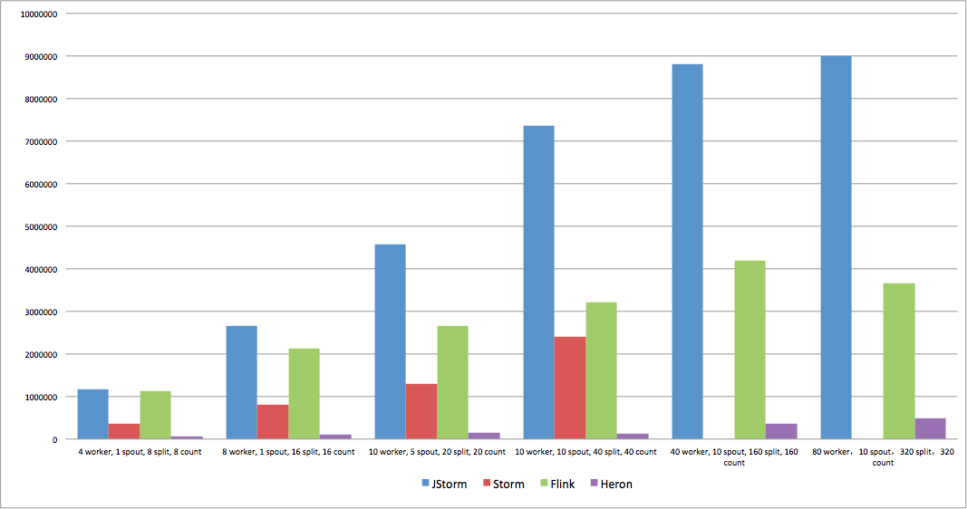 - heron 一直号称是storm 10倍性能, 但heron 对比的对象是storm 0.8.2, 这是3年前的storm,是上一代的storm, 而最新版storm 1.0.2 早已经是storm 0.8.2 的十倍性能。