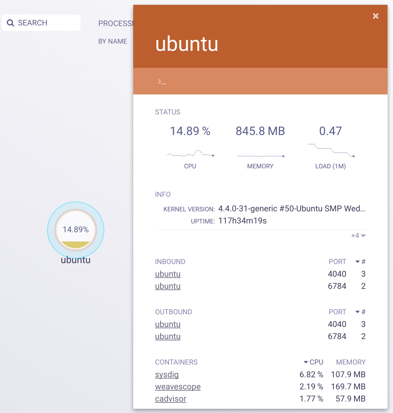 除了监控容器,Weave Scope 还可以监控 Docker Host。