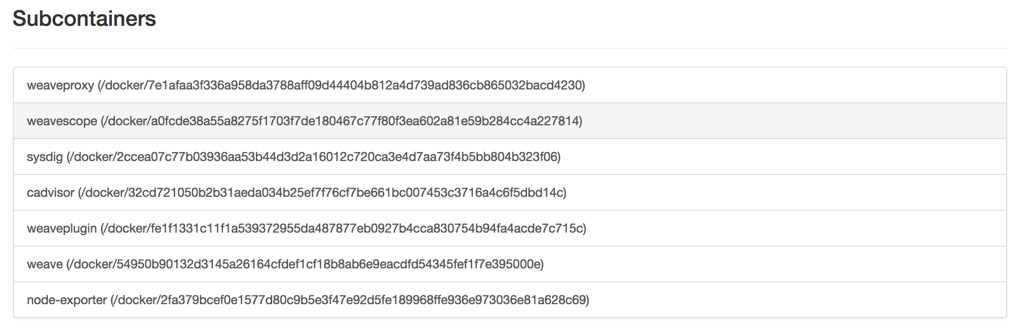 点击某个容器,比如 sysdig,进入该容器的监控页面。