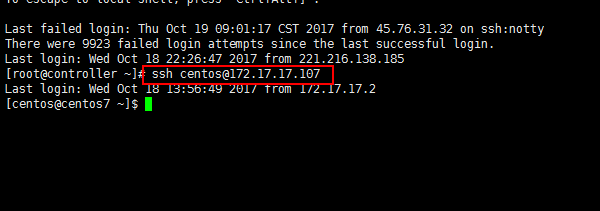 可以直接如图在控制节点中,输入ssh 镜像名@分配的IP就可以登录上。