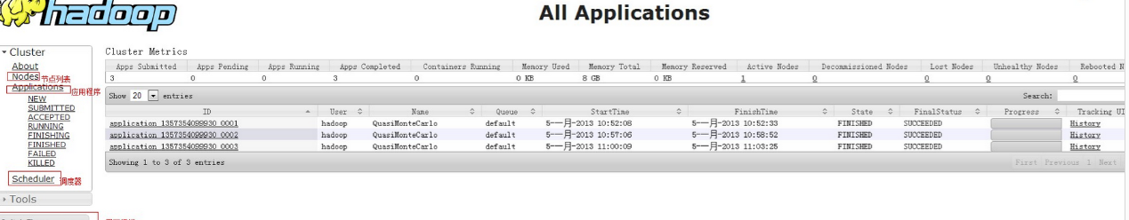 现在便可以打开页面http://192.168.80.32:8088及http://192.168.80.32:50070;看到下面两个页面时说明安装成功。