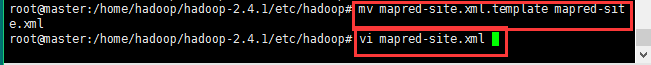 修改第四个配置文件:首先将mapred-site.xml.template修改为mapred.site.xml,然后就将开始修改配置文件;