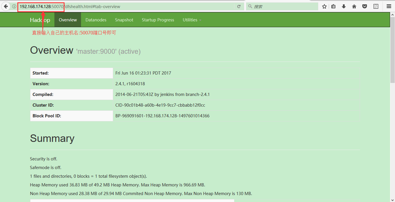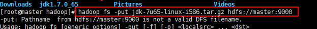 假如你这样书写hadoop fs -put jdk-7u65-linux-i586.tar.gz hdfs://master:9000这个9000后面没有这个/那么你在浏览器是看不到任何文件的;