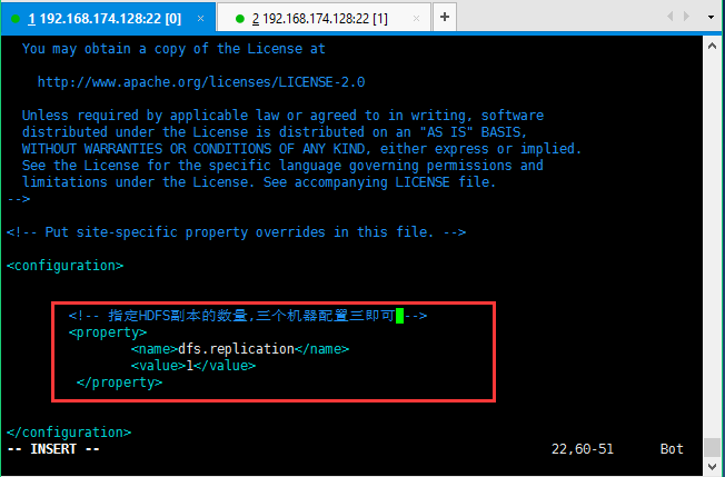 修改的内容如下所示:因为是伪分布式,所以节点配置直接配置主机名了;