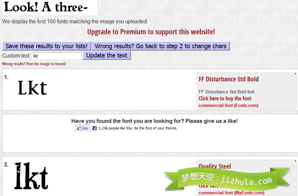 最后一个画面是结果屏幕,显示字体列表,更具相似度降序排列。您可以从数量庞大的字体中选择,你也可以过滤掉付费的字体。