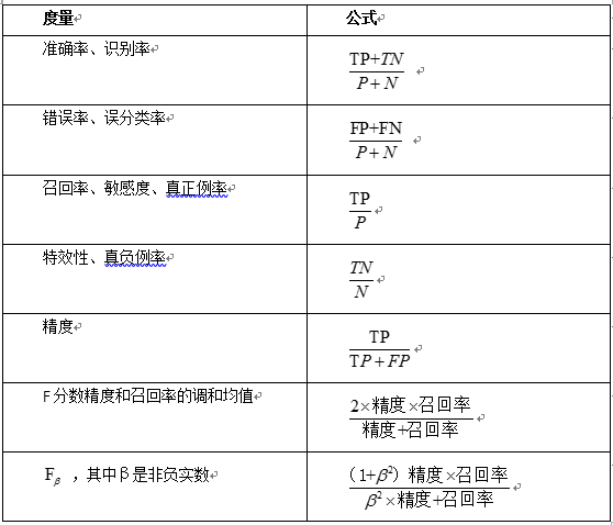 评估度量:(其中P:正样本数 N:负样本数 TP:真正例 TN:真负例 FP:假正例 FN:假负例)