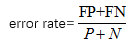 错误率:错误识别元组所占的比例,又叫误识别率,公式如下: