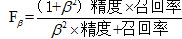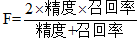 F度量(又叫F分数):用精度和召回率的方法把他们组合到一个度量中。公式如下: