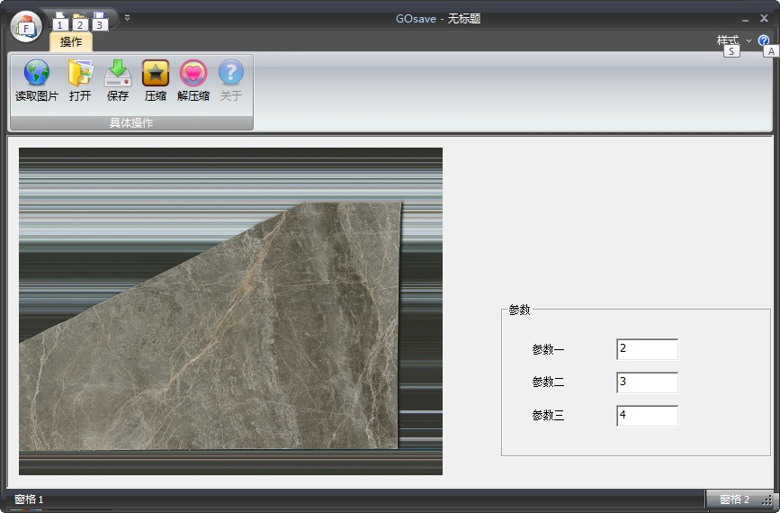 1、点击读取图片,可以读入jpg或bmp图片,同时手工设置参数一到三