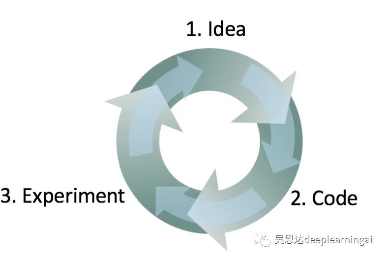 图说明:迭代越快进展越快,此时拥有开发集、测试集和度量指标的重要性便体现出来了,每当有一个新想法, 在开发集上评估其性能可以帮助你判断当前方向是否确定。