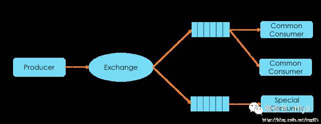 这里增加了一下场景复杂度:对于上报的数据,如果是special的行为,需要优先处理。从上图可以看到,数据上报端负责将数据投递到RabbitMQ对应的Exchange,并指明routing_key是common还是special。数据处理端,可以根据情况启多个Woker来消费数据,但至少需要两个,一个用来处理common数据,一个用来处理special的数据。注意:当需要增加多个Worker来消费同一类数据时,需要保持Queue名字一致,比如上面的Common数据。