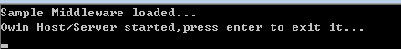 这里需要回到我的上一篇博文, Host和Server开发, 在那里面,我说到目前的Startup函数是空的,说明没有加载任何Middleware,而现在我们需要在那个函数里面加载我们开发的Middleware了,代码很简单: