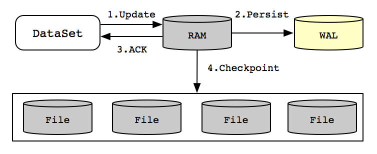 - 数据和索引在内存和磁盘中以相似的格式进行存储,避免复杂的格式转化,数据集只是在内存和磁盘之间进行移动