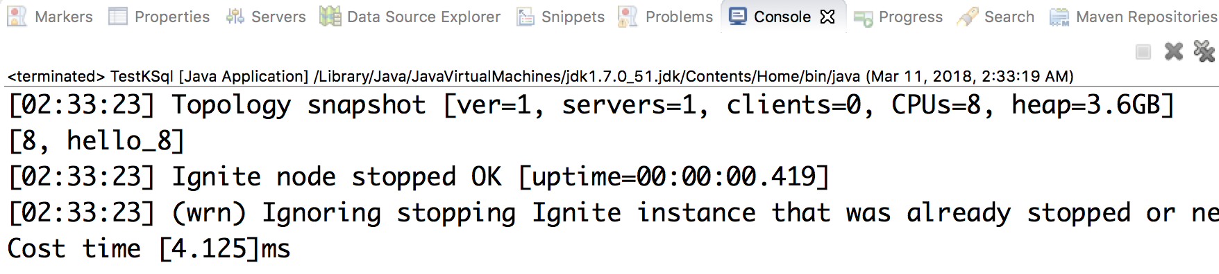 Apache Ignite整体来说,它基本把现在分布式的一些概念都集成了,包含分布式存储、分布式计算、分布式服务、流式计算等等。而且,它对Java语言的支持,与JDK能够很好的整合,能够很友好的兼容JDK的现有API,当你开启一个线程池,你不需要关系是本地线程池还是分布式线程池,只管提交任务就行。Apache Ignite在与RDBMS、Hadoop、Spark、Kafka等传统关系型数据库和主流大数据套件的集成,提供了非常灵活好用的组件API。