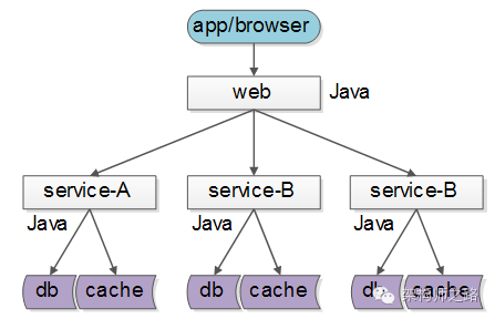 服务化的一个好处就是,不限定服务的提供方使用什么技术选型,能够实现大公司跨团队的技术解耦,如下图: