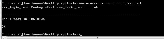 在appium-server启动后,在appiumier项目根目录打开cmd,输入以下命令进行nose测试: