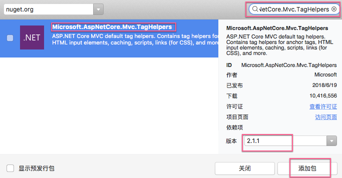 如果你没有在 Microsoft.AspNetCore.App 包中找到 Microsoft.AspNetCore.Mvc.TagHelpers