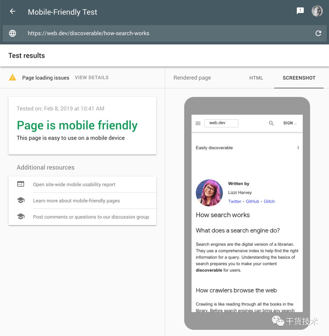 如果有疑问,移动友好测试工具对于测试您选择的方法是否符合您的预期非常宝贵。 它显示了Google抓取工具显示任何页面的方式预览,找到的序列化HTML内容(执行JavaScript后)以及渲染过程中遇到的任何错误。
