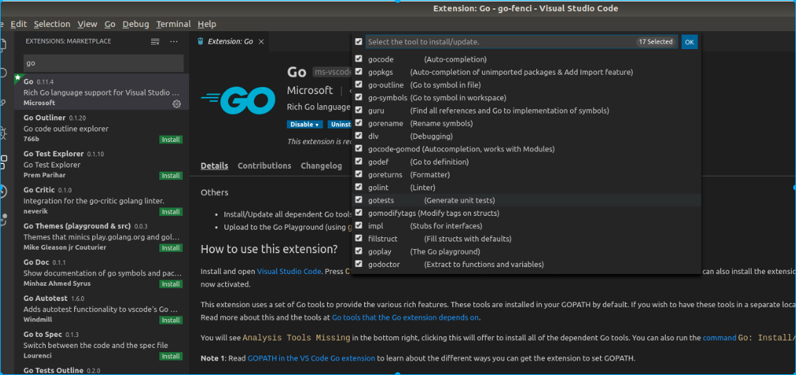 Installing github.com/cweill/gotests/... SUCCEEDED